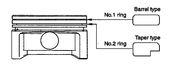 2. Check each piston ring for breakage, damage and abnormal wear. Replace the defective rings. When the piston requires replacement, its rings should also be replaced.