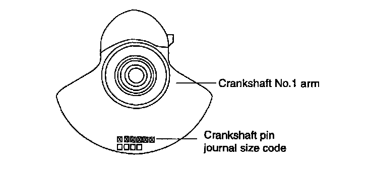 NOTE: Record the pin journal size code letters on the crankshaft balance weight. Reading order is from left to right as shown, with No. 1 pin journal size code shown first.
