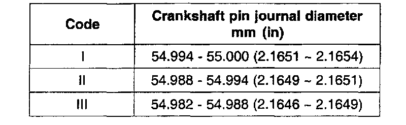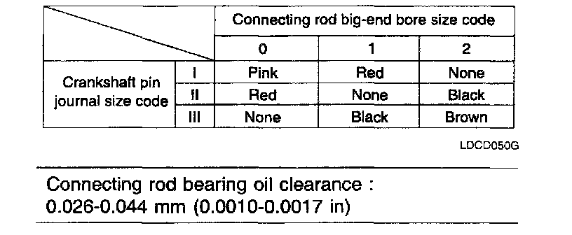Connecting rod bearing oil clearance: 0.026 - 0.044 mm (0.0010 - 0.0017 inch)