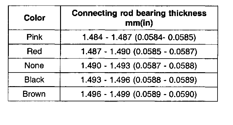 CONNECTING ROD BEARING THICKNESS (REFERENCE DATA)