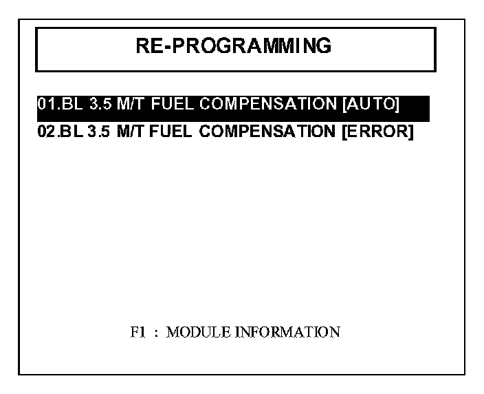 9. Select option 01: (SORENTO) "BL 3.5L M/T FUEL COMPENSATION (AUTO)" and press the "ENTER" key.