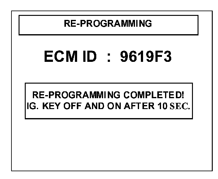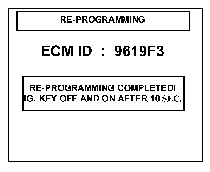 DO NOT turn the ignition key "OFF" or interrupt the power supply during reprogramming. When the reprogramming is completed, turn the ignition key "OFF" and wait 20 seconds before starting the engine.