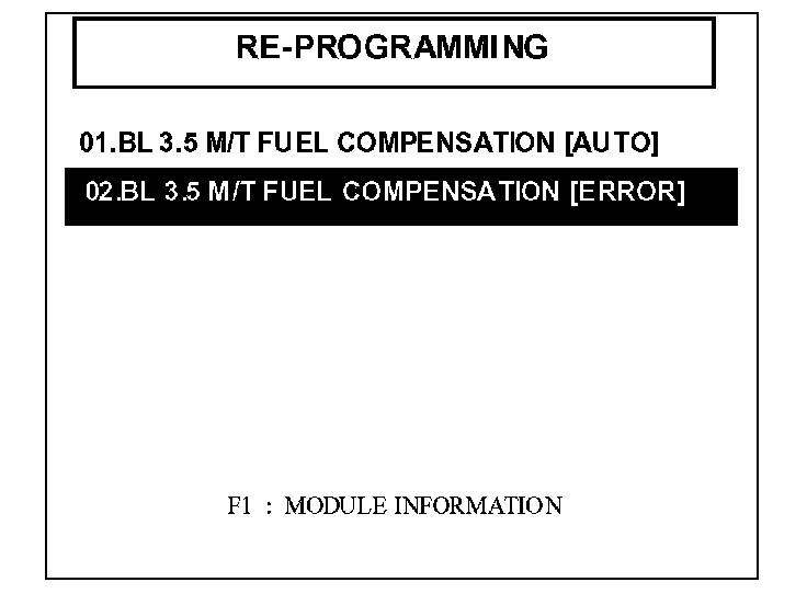 15. Select option 02: (SORENTO) "BL 3.5L M/T FUEL COMPENSATION (ERROR)" and press "ENTER".