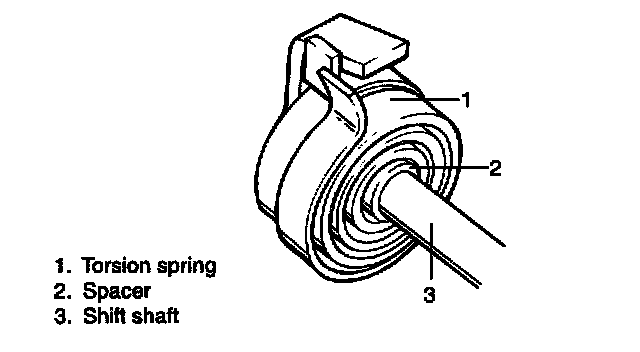 1. Insert spacer in torsion spring and install over free end of shift shaft.