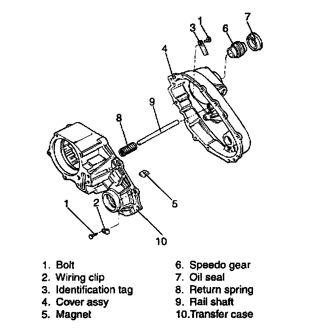 10. Install speedo gear over spline of output shaft into cover assembly.