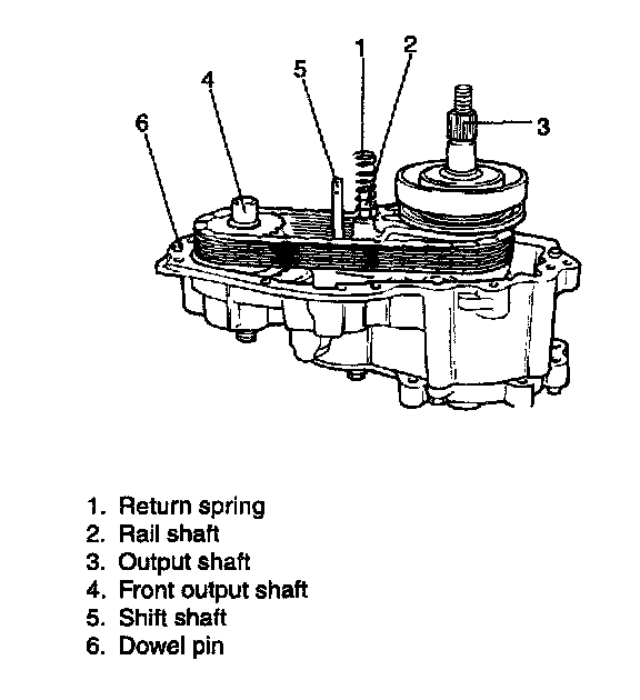 5. Install return spring over rail shaft in transfer case to rest on shift fork.