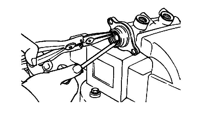 4. Press the piston with a screwdriver and install the snap ring.