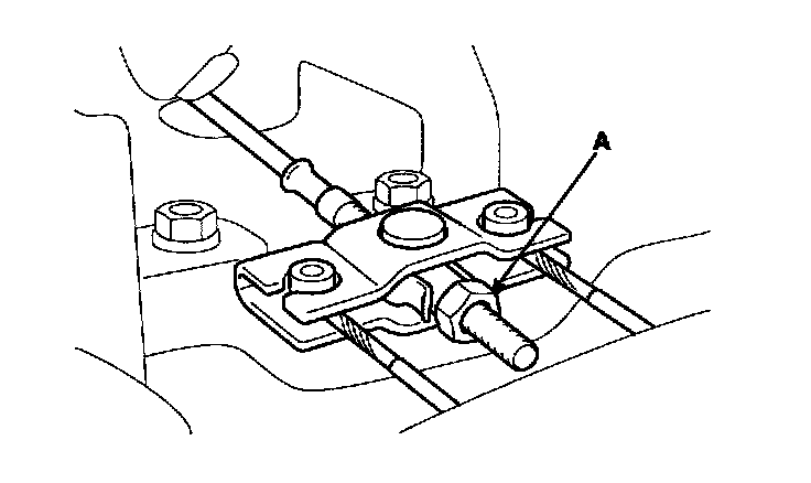 5. Tighten the adjusting nut (A) until the parking brakes drag slightly when the rear wheels are turned.