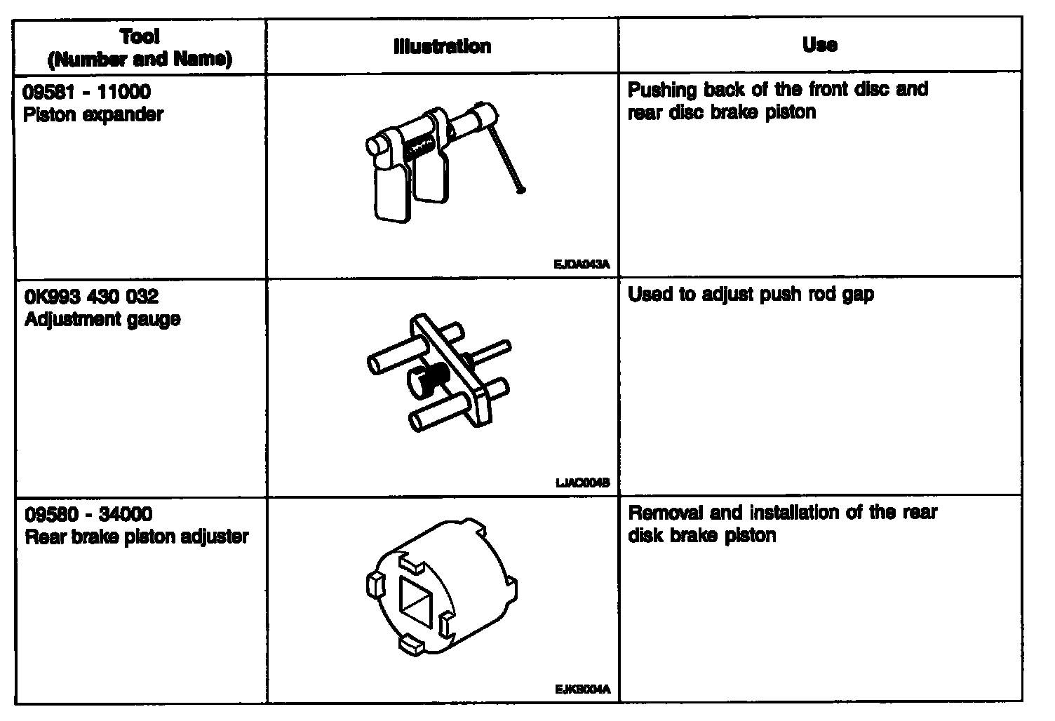 SPECIAL SERVICE TOOLS: