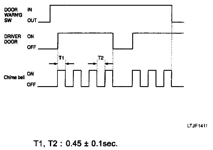 1. If the key is in the key cylinder and the Driver door is opened, the chime bell is sounded (period: 0.9 sec., duty rate: 50%).