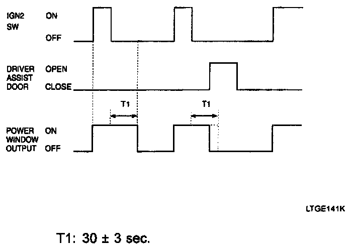 1. When the ignition is switched OFF, power window output remains ON for 30 seconds and then turns OFF.