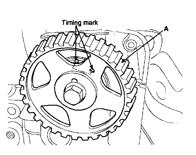 4. Align the timing marks of the camshaft sprocket (A) and crankshaft sprocket (B) with the No.1 piston placed at top dead center and its compression stroke.
