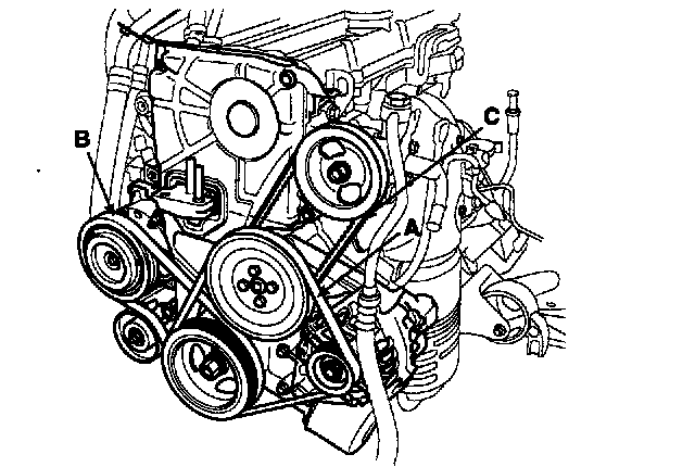 7. Remove the power steering pump drive belt (C).