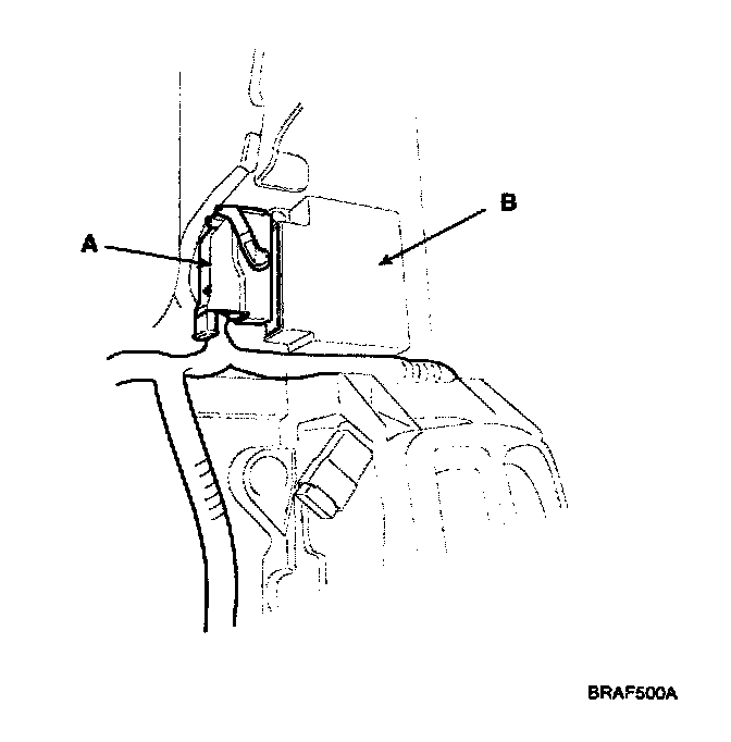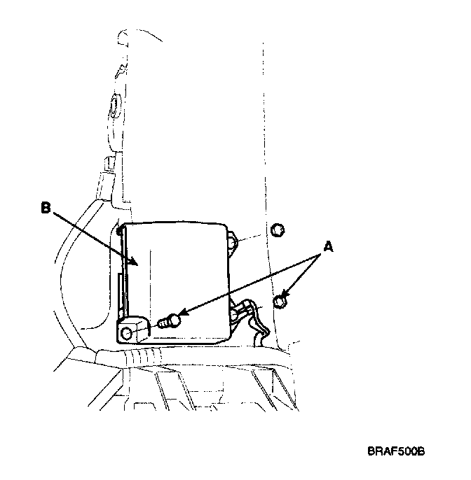 7. Remove the SRSCM mounting bolt and nuts(A) from the SRSCM and pull out the SRSCM(B) from the bracket.