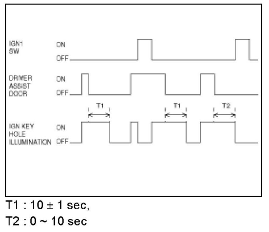 1. Ignition keyhole illumination is turned ON when the driver or passenger door is opened.