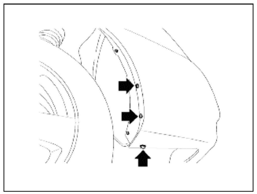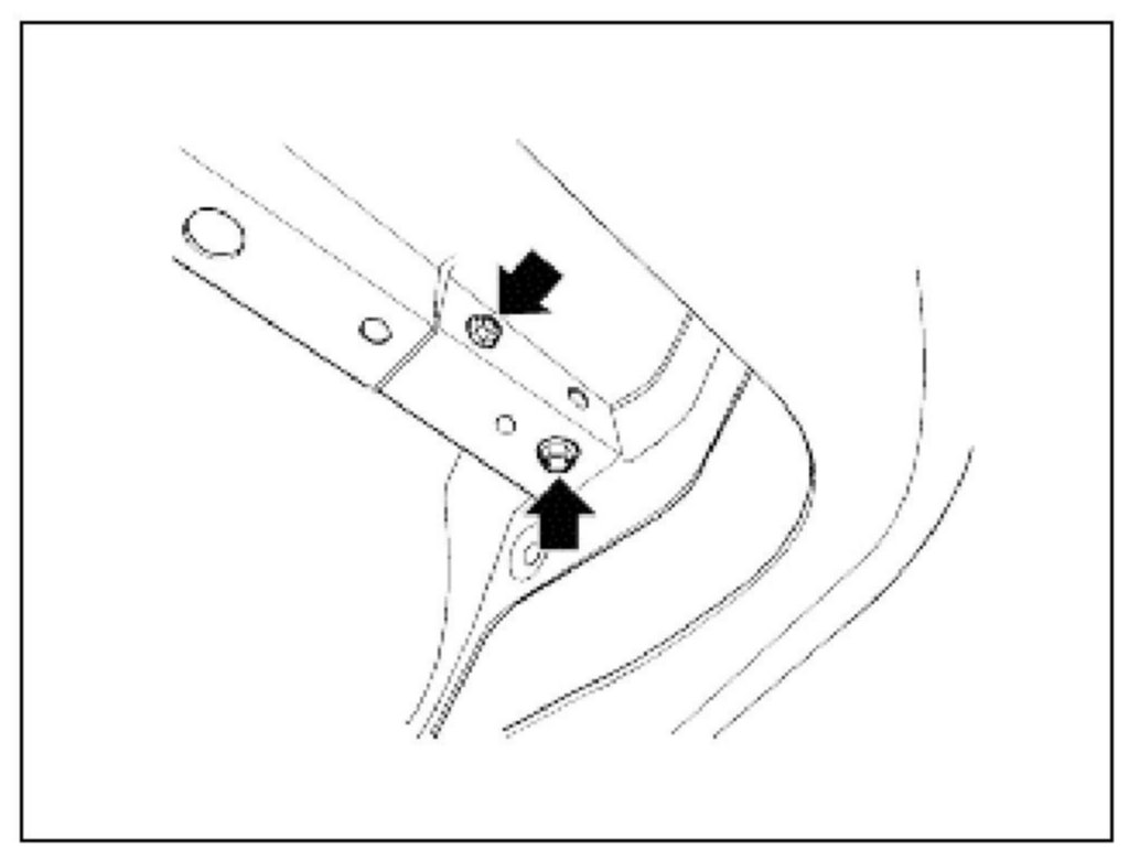 7. Remove bumper stay mounting bolts(2) from bottom of vehicle (RH).