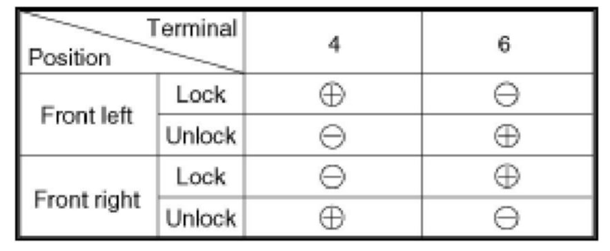 3. Check actuator operation by connecting power and ground according to the table. To prevent damage to the actuator, apply battery voltage only momentarily