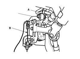 4. After turning the stop lamp switch (A) until it contacts the brake pedal stopper (B) (just before the brake pedal is caused to move), return the stop lamp switch 1/2 to 1 turn and secure by tightening the lock nut.