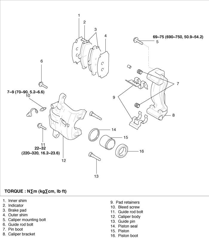 If you are reusing the pads, always reinstall the brake pads in their original positions to prevent a momentary loss of braking efficiency.