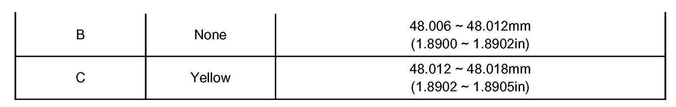 Standard oil clearance: 0.028 - 0.048 mm (0.0011 - 0.0019 inch)