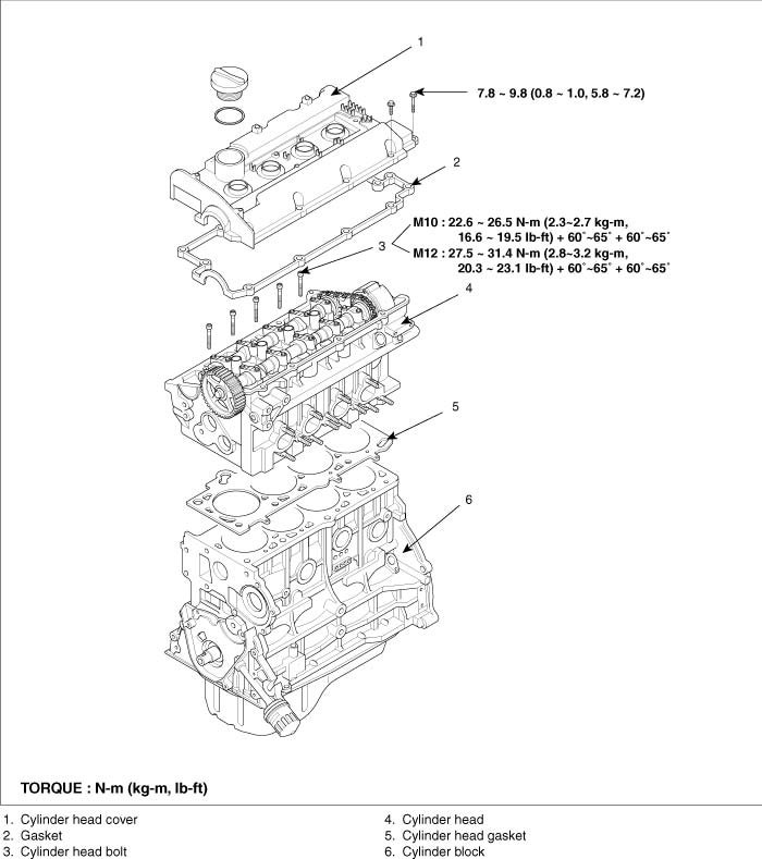 2) To avoid damaging the cylinder head, wait until the engine coolant temperature drops below normal temperature before removing it.
