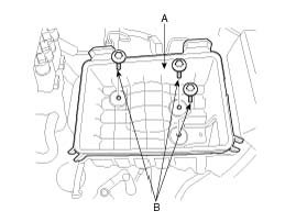 5) Remove the bolts (B) and air cleaner lower cover (A).