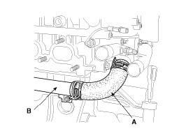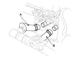 5. Remove the upper radiator hose (A) and lower radiator hose (B).