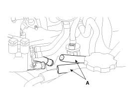 10. Disconnect the hose (B) of the PCSV (Purge Control Solenoid Valve) side.