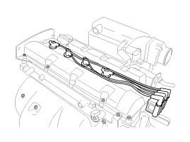 8. Remove the engine wire harness connectors and wire harness clamps from cylinder head and the intake manifold.