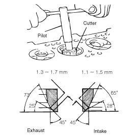 3) Recondition the valve seat with a valve seat grinder or cutter. The valve seat contact width should be within specifications and centered on the valve face.