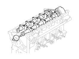 2) Using a dial indicator, measure the end play while moving the camshaft back and forth.