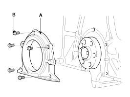 11. Install a new gasket and rear oil seal case (A) with 5 bolts (B).