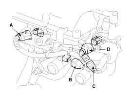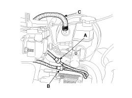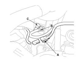 3) Disconnect the ECT (Engine Coolant Temperature) sensor connector (C).
