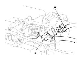 6) Disconnect the ISA (Idle Speed Actuator) connector (B).
