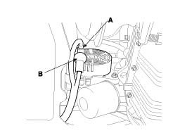 14. Disconnect the hose (B) of the PCSV (Purge Control Solenoid Valve) side.