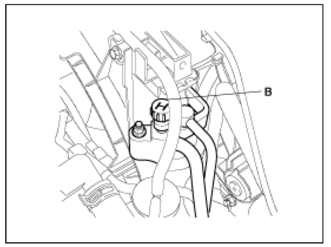 1. Connect a R-134 a refrigerant Recovery/Recycling/charging System to the high-pressure service port (B,D) and the low-pressure service port (A,C) as shown, following the equipment manufacturer's instructions.