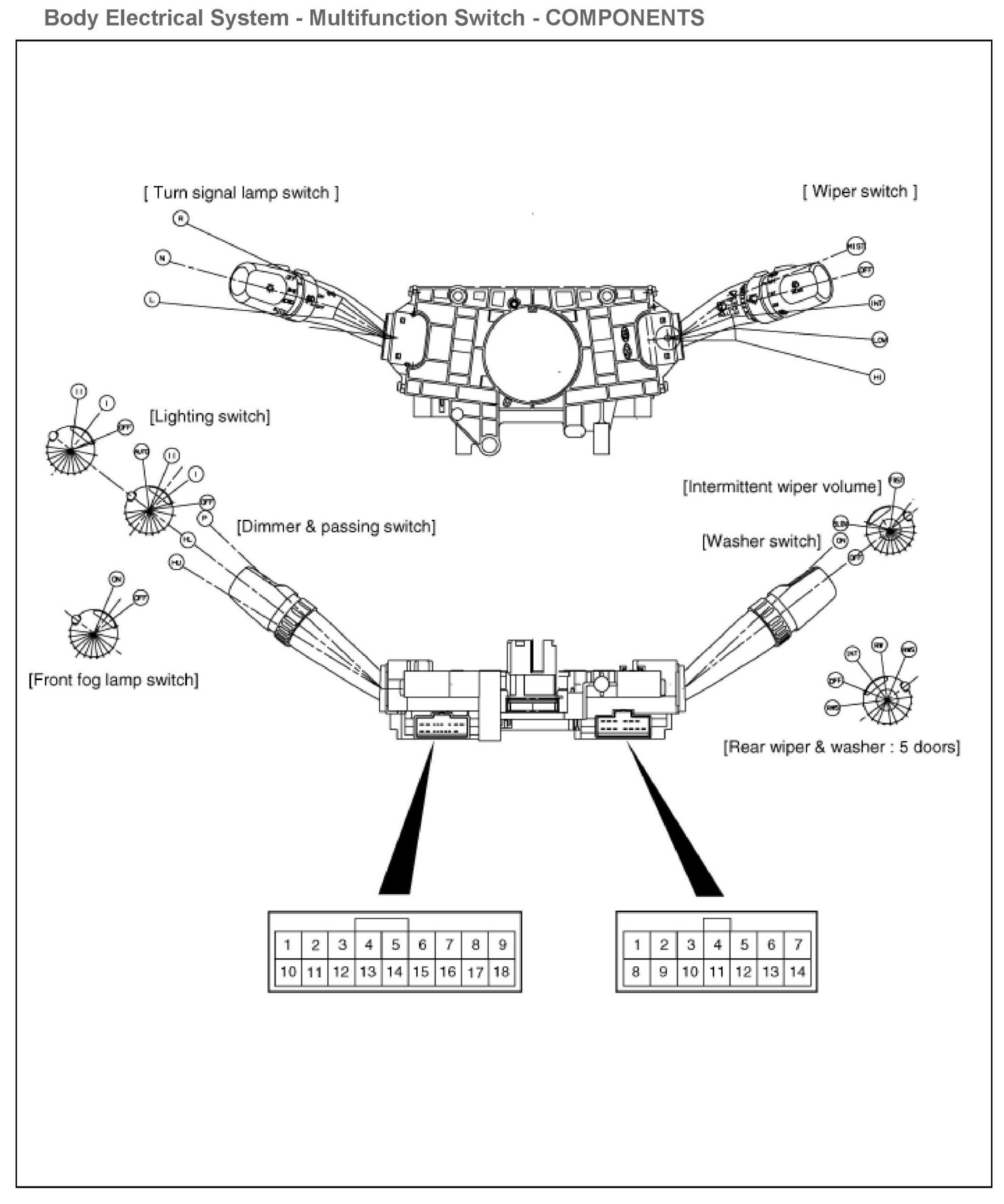 Prior to removing of the multifunction switch assembly in vehicles equipped with air bags, be careful to keep the following items.