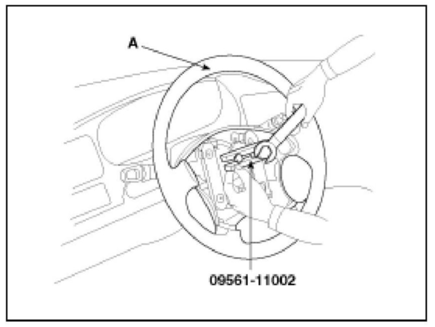 5. Align the steering shaft with wheel then remove the steering wheel(A) using special tool (09561-11002).