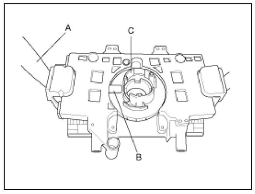 11. Installation the cancel lever (B) to the cancel cam (C) as shown in the figure when replacing the lighting switch (A).