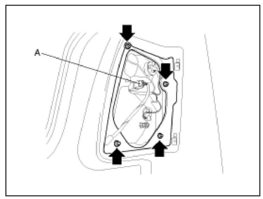 3. Remove the 4nuts holding the rear combination lamp then disconnect the 6P connector (A).