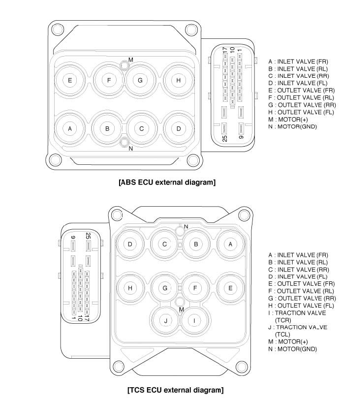 1. The TCS control module (HECU) controls TCS control. It includes ABS control module.