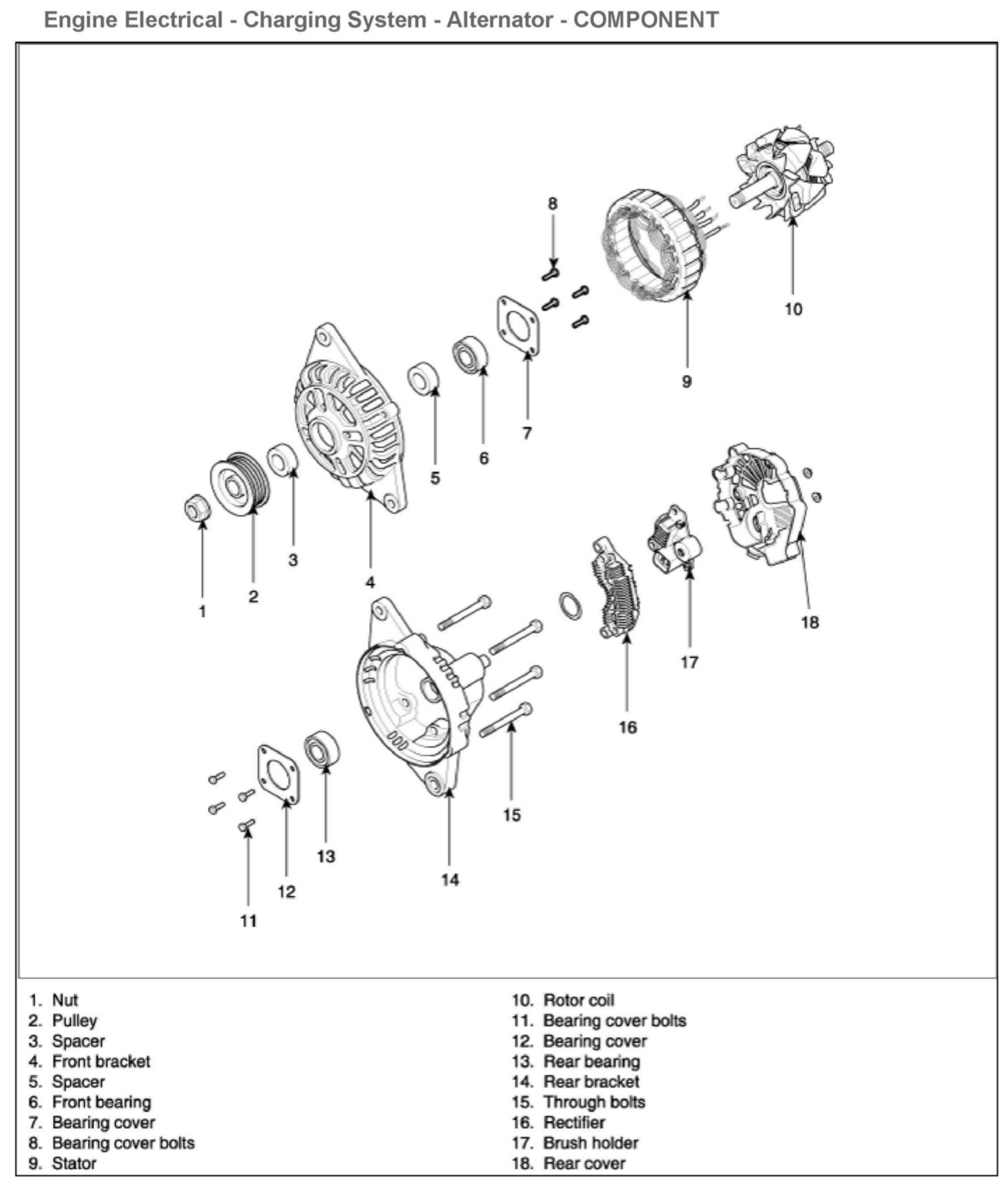 NOTE: Before the rotor is attached to the rear bracket, insert a wire through the small hole in the rear bracket to lock the brush. After the rotor has been installed, the wire can be removed.