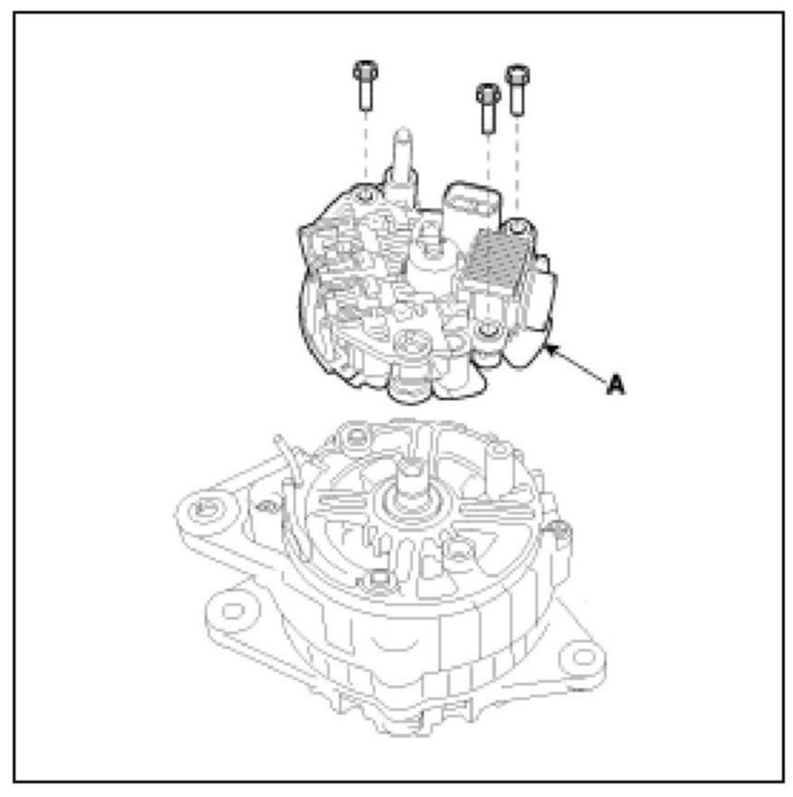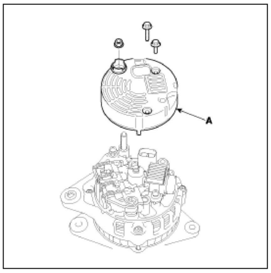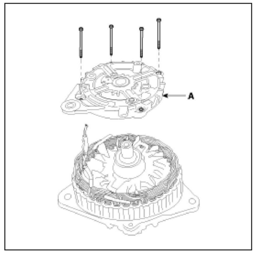 2. Unsolder the 4 stator leads (A) to the main diodes on the rectifier (B).