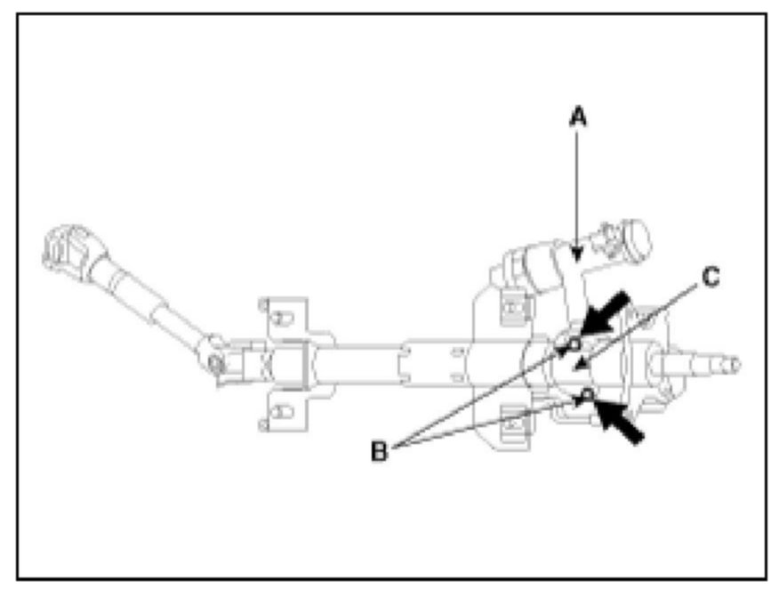 3. Disassembly the key lock assembly (A) from the steering column and shaft assembly (B).