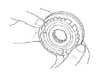 1. Install the synchronizer sleeve on the hub and check that they slide smoothly.