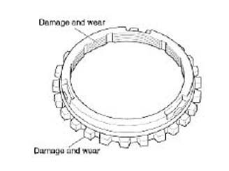 3. Check for wear of the hub end surfaces (in contact with each gear).