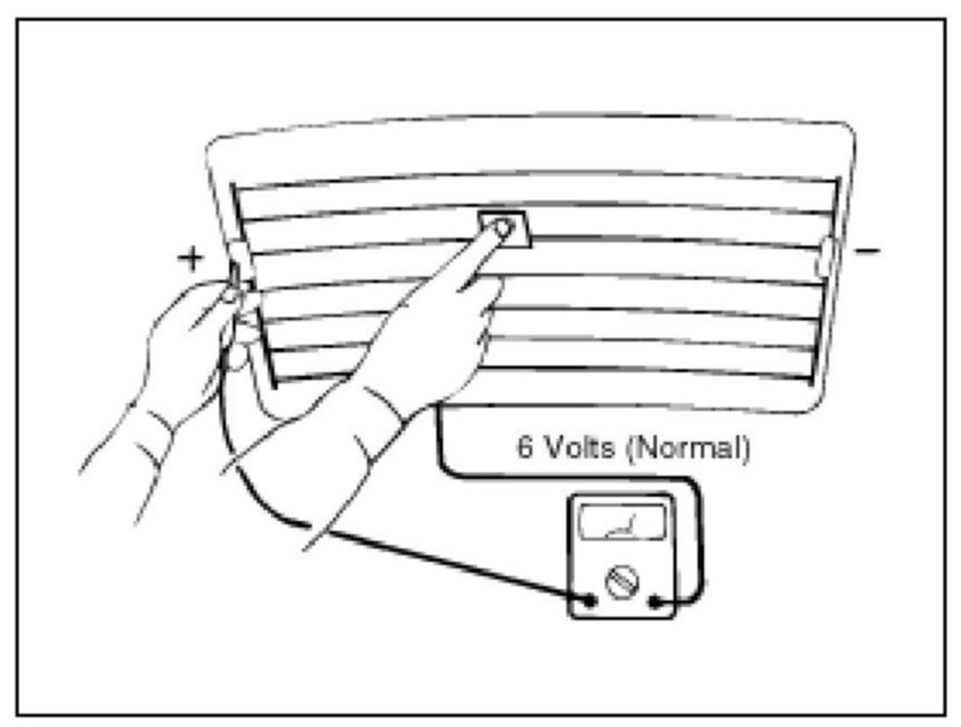 2. If a heater line is burned out between the center point and (+) terminal, the voltmeter will indicate 12 V.