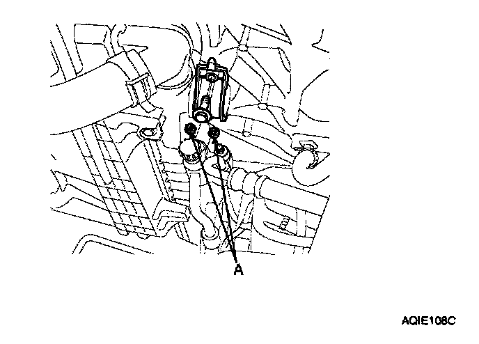 4. Remove the nuts (A), then disconnect the discharge line and condenser line from the condenser. Plug or cap the lines immediately after disconnecting them to avoid moisture and dust contamination.