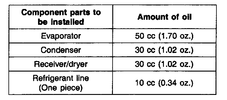 When replacing the system component parts, supply the following amount of oil to the component parts to be installed.