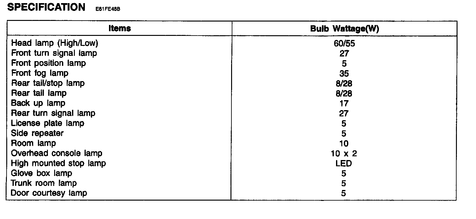 Lighting and Horns: Specifications
